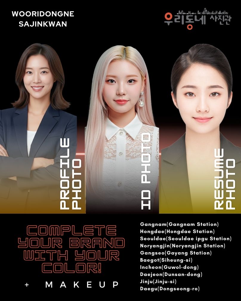 Woori Dongne Sajinkwanは、CJ、LG、韓電(韓国電力公社)、斗山、KAKAO、銀行など、様々な大中小企業の各種規格に対応した社員証および企業写真撮影を専門としております。